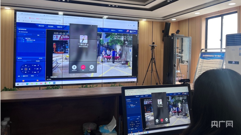 莲湖区枣园大街指挥室可实时检查辖内社区状况(央广网见习记者 唐诗敏 摄)