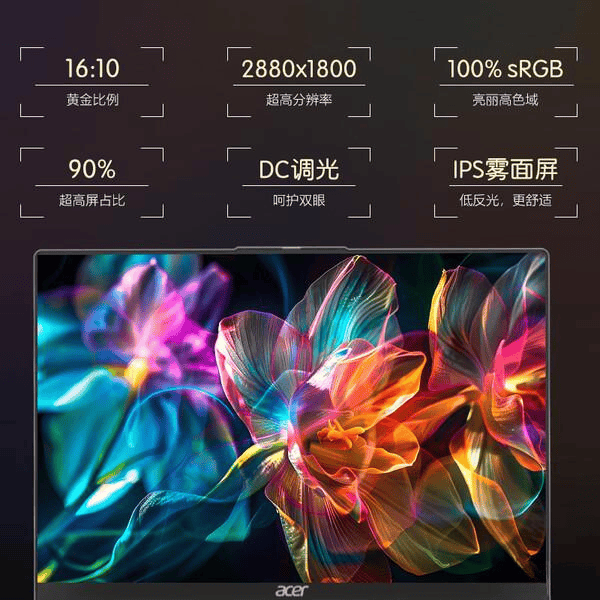 另外,这款轻薄本还具备丰富的接口,如双全功能Type-C、USB-A和HDMI等,无论是连接外设还是进行数据传输都游刃有余。而内置的Wi-Fi 6网络卡,保证了高速稳定的网络连接,让你在处理在线任务或进行视频会议时毫无延迟,最大限度提升工作效率。总的来说,这款宏碁轻薄本凭借其强大的性能、出众的便携性和丰富的功能,绝对是现代高效办公和学习的理想选择。